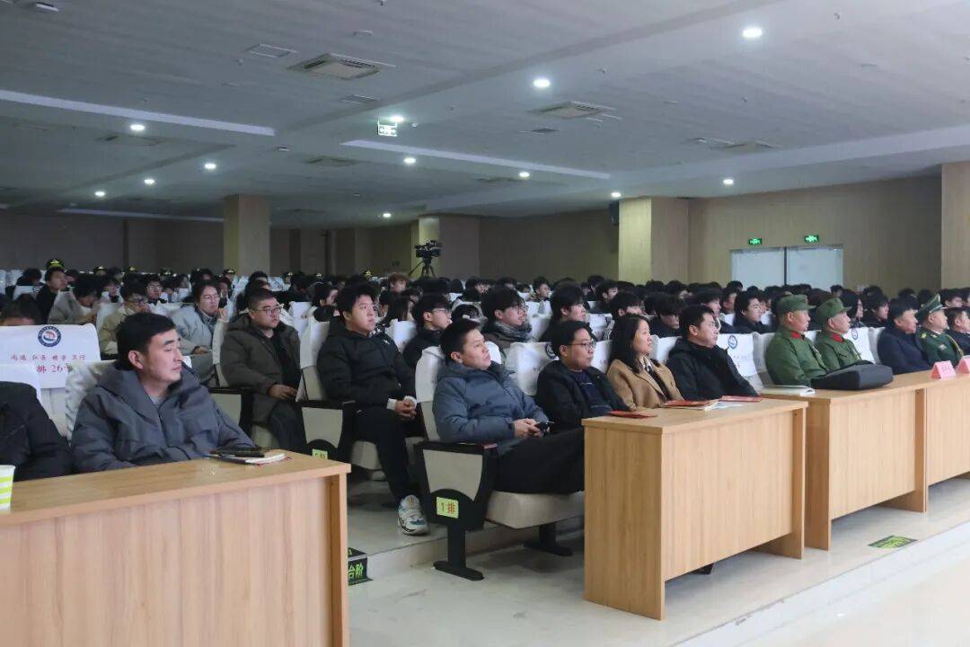 为深入贯彻落实国家征兵政策,激发青年学子投身国防、报效祖国的赤诚热情,12月30日下午,濮阳医学高等专科学校在易明楼报告厅举行2026年大学生征兵动员大会暨国防教育主题报告会。副校长李同川出席大会并作动员讲话,邀请战斗英雄、大校退役军人陈志军同志作专题报告。各学院党总支书记、武装专干、全体辅导员和学生代表齐聚一堂,共同接受了一场国防教育的精神洗礼。