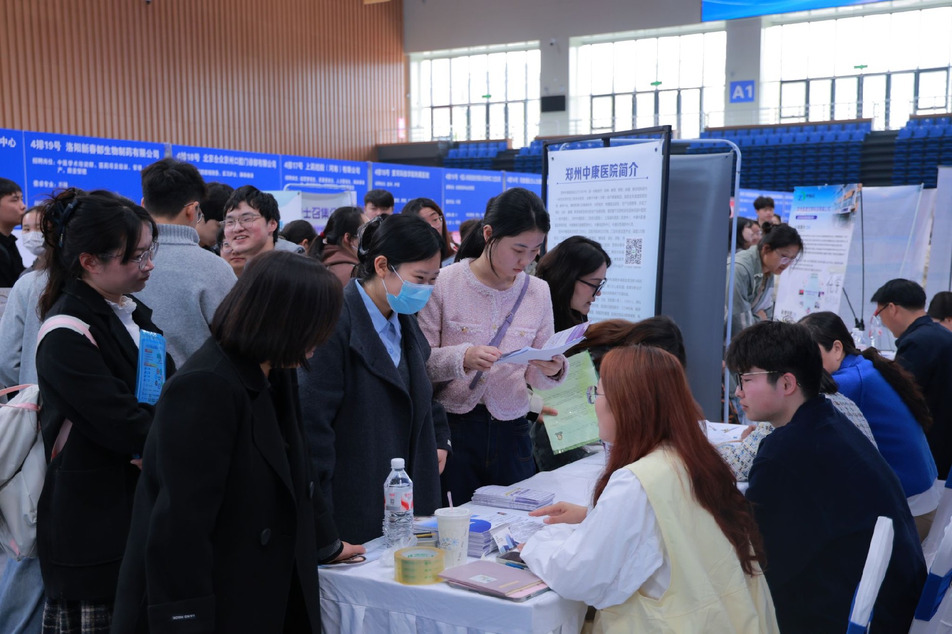 双选会现场2026年3月28日,“豫荐未来 青春启航”河南省高校毕业生就业市场中医药类分市场暨河南中医药大学2026届毕业生春季双选会在学校龙子湖校区体育馆举行。本次双选会采用线上+线下相结合的方式,岗位设置高度契合中医药类相关专业毕业生的求职需求,为用人单位和毕业生搭建起高效便捷的对接平台。本次双选会特邀华润三