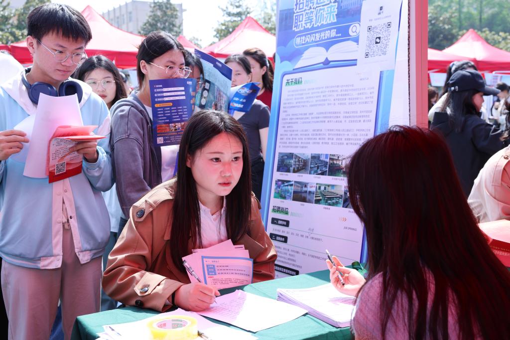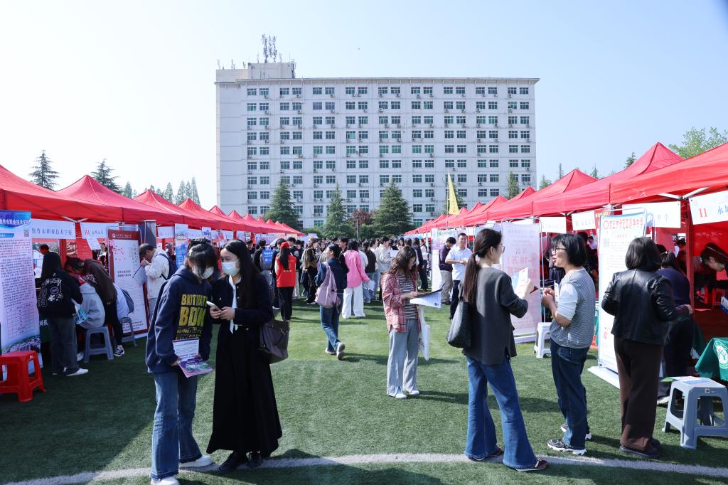 4月10日,河南省毕业生就业市场豫南分市场暨信阳师范大学2026届毕业生春季双向选择洽谈会在学校谭山校区西操场举办。本次双选会由河南省教育厅主办,信阳师范大学、河南省大中专学生就业服务中心、信阳市人力资源和社会保障局等单位承办。信阳师范大学副校长朱晓东、涂友超,以及各学院党政负责人、相关职能部门负责人到场指导。
