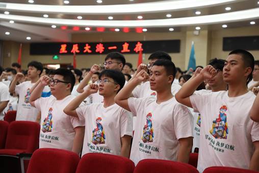 典礼最后,五位2023届毕业生代表分别代表五个学院向母校庄严承诺:请母校放心,荣校有我,强国有我。全体毕业生跟随领誓人庄严宣誓:“不忘初心,追逐梦想;牢记使命,坚守信仰;勇担责任,敬业爱岗;努力争做,能工巧匠;志存高远,奋发向上;为人生添彩,为母校争光!”全体毕业生的青春誓言,吹响了搏击长空的人生号角。