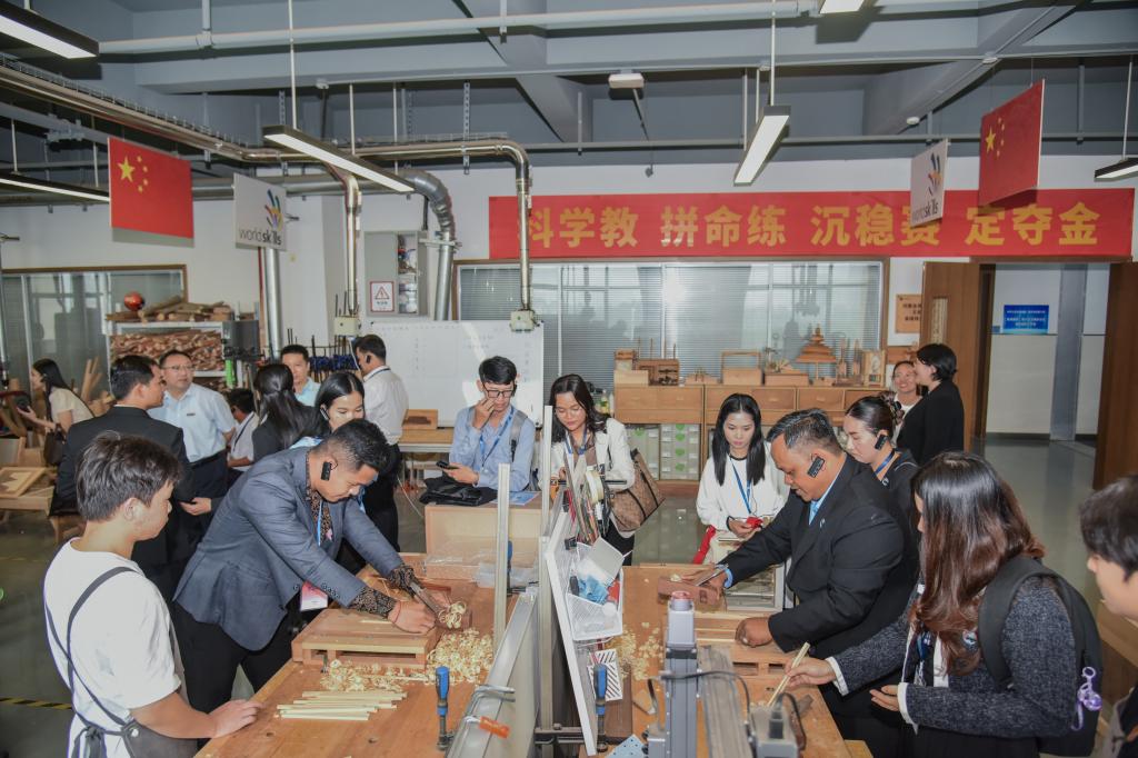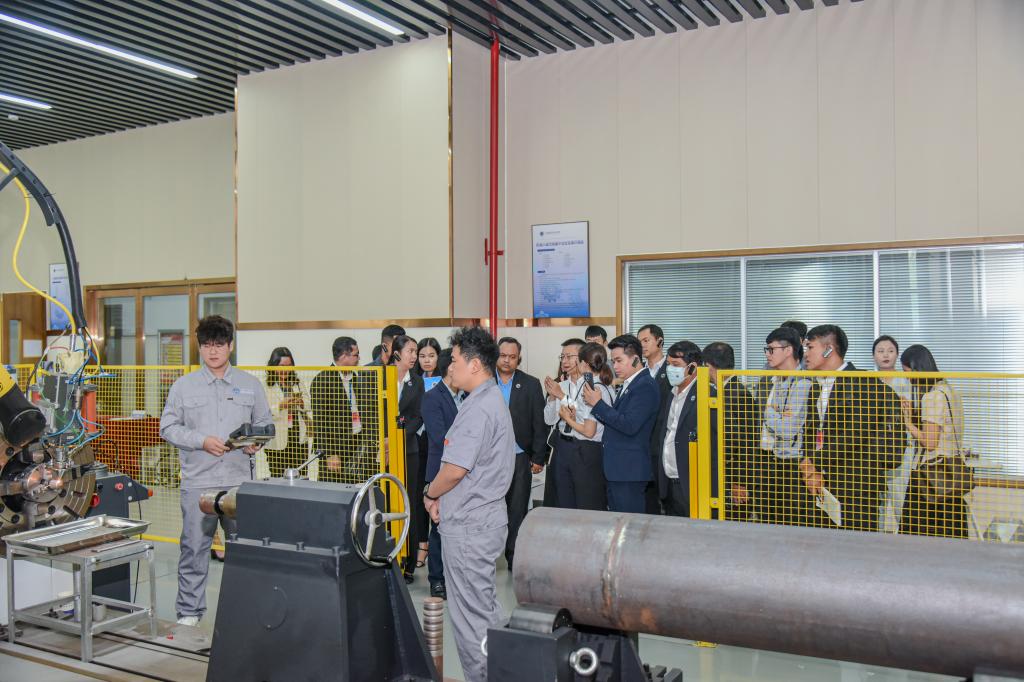 会后,研修班一行实地考察了学校现代技术综合实训中心,重点参观了焊接技术工匠工坊、格力智能制造学习工厂、新能源汽车实训室、木工创意工坊等校内实训场地和比亚迪郑州工厂等校外产教融合基地,详细了解了学校的教学设施、实训条件和师资力量,对学校的教学质量和办学水平给予了高度评价。