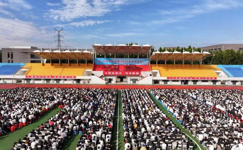 红旗映杏坛,秋风谱华章。10月13日上午,河南护理职业学院2025级新生开学典礼在运动场盛大举行。学校领导胡仕坤、钟会亮、王忠伟、郭海旺、常慧敏,副科级以上干部、学生工作部全体工作人员和2025级专兼职辅导员共同见证载梦而来的新同学启幕逐梦前行的崭新篇章。大会由校党委副书记、工会主席钟会亮主持。开学典礼现场盛况