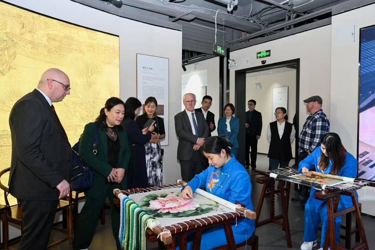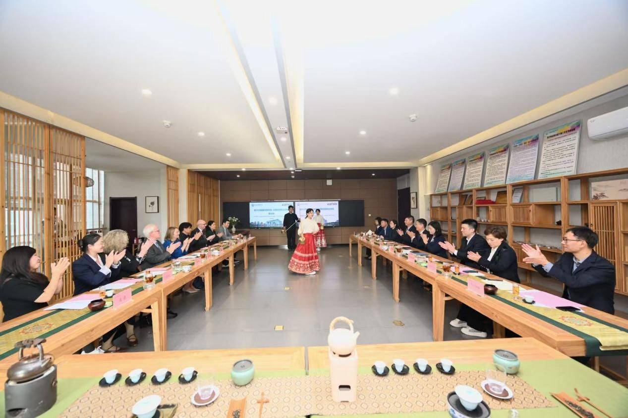 在开学典礼开始前,爱方嘉宾与校领导在巾帼茶艺大师工作室进行简短会谈。双方互赠礼品,并一同欣赏茶艺表演,气氛亲切融洽。典礼结束后,爱方嘉宾一行参观了学校刺绣博物馆,并对河南经贸职业学院在传承与弘扬中华优秀传统文化方面的举措和成绩给予高度评价。