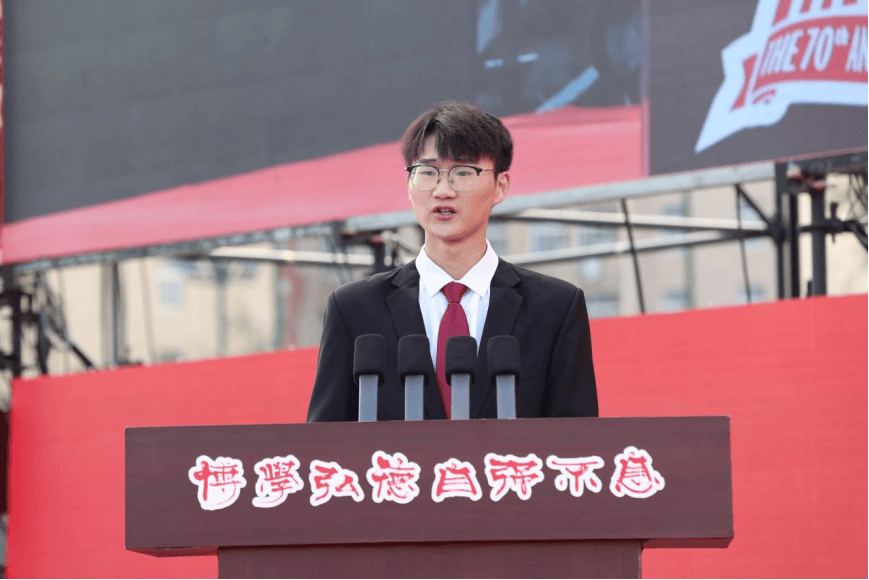 学生代表、经济管理学院工商管理2023级王天赐以在校生视角回顾学校发展历程,感恩学校春风化雨般的培育,致敬老师们“仰之弥高,钻之弥坚”的师者风范,感怀“恰同学少年”的同窗情谊,并表示将珍惜韶华、奋发图强,把个人理想融入学校发展,以实际行动为学校在新征程上谱写更加灿烂的篇章贡献青春力量。