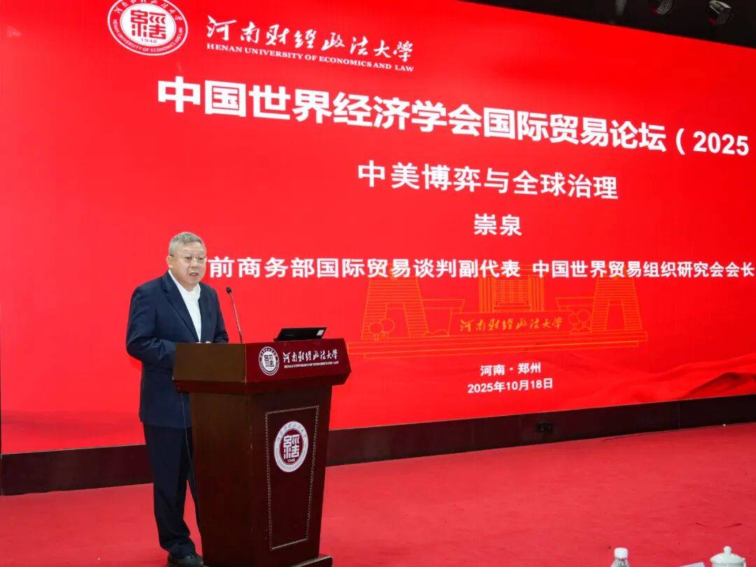 10月18日,由中国世界经济学会主办、河南财经政法大学经济学部承办的“中国世界经济学会国际贸易论坛(2025)”在郑东校区举办。商务部前国际贸易谈判副代表、中国世界贸易组织研究会会长崇泉,中国社会科学院国家全球战略智库秘书长东艳,河南财经政法大学党委书记、校长司林胜,党委副书记赵楠,副校长叶光出席论坛开幕式。来自全国50余所高校、科研院所、学术期刊的专家学者和河南财经政法大学师生代表参会。会议开幕式由赵楠主持。