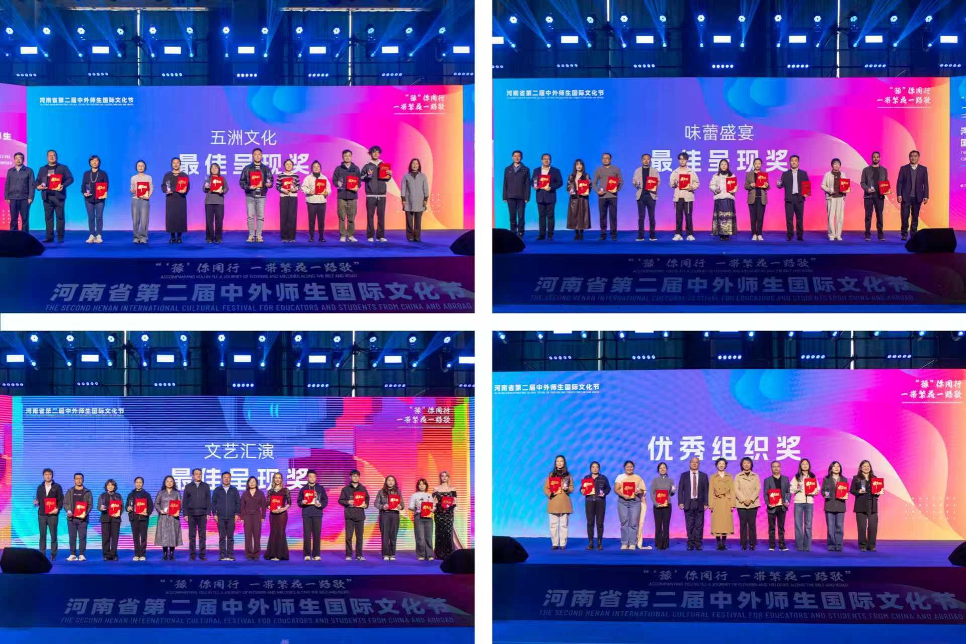 文化节期间还举办了盛大的文艺汇演暨表彰颁奖大会。演出分为“华服共舞”“五洲弦歌”“文衢流芳”三大篇章,集中展示了中外艺术形式的交融共生。大会为在“五洲文化市集”“味蕾盛宴市集”“文艺汇演”及组织工作中表现突出的单位颁发了奖项。