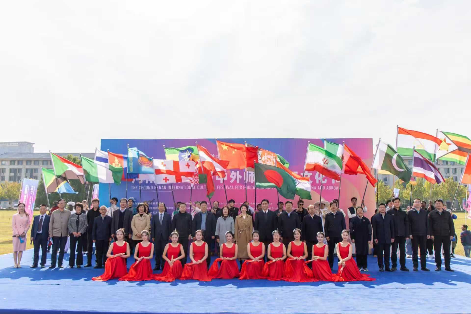 开幕式文艺表演国家文化展、河南非遗文化市集、美食盛宴展位文艺汇演暨表彰颁奖大会集体合影10月18日,河南省第二届“‘豫’你同行 一带繁花一路歌”中外师生国际文化节在华北水利水电大学龙子湖校区举行。本次活动由河南省教育厅主办,华北水利水电大学与郑州西亚斯学院共同协办,旨在深入贯彻全国教育大会精神,落实《教育