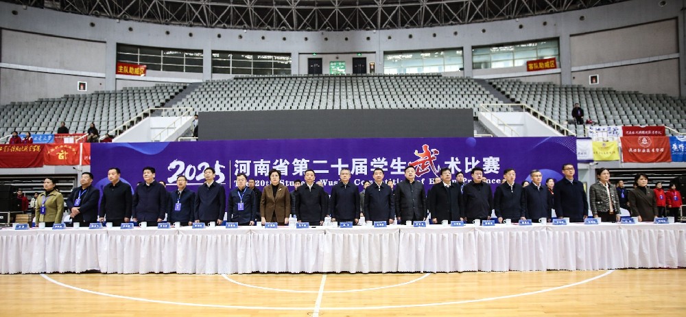 10月21日上午,河南省第二十届学生武术比赛在洛阳市体育中心隆重开幕。本届比赛由河南省教育厅、河南省体育局联合主办,河南推拿职业学院承办。河南省体育局党组书记、局长马宇峰,河南省教育厅党组成员、副厅长杨光,洛阳市人民政府副市长任丽君,洛阳市体育局、洛阳市教育局以及郑州大学、河南大学、河南科技大学、河南农业大学等省内高校相关领导出席开幕式。全体教练员、裁判员、运动员以及工作人员参加。河南推拿职业学院党委书记付晓丽致辞,校长陈相新主持开幕式。