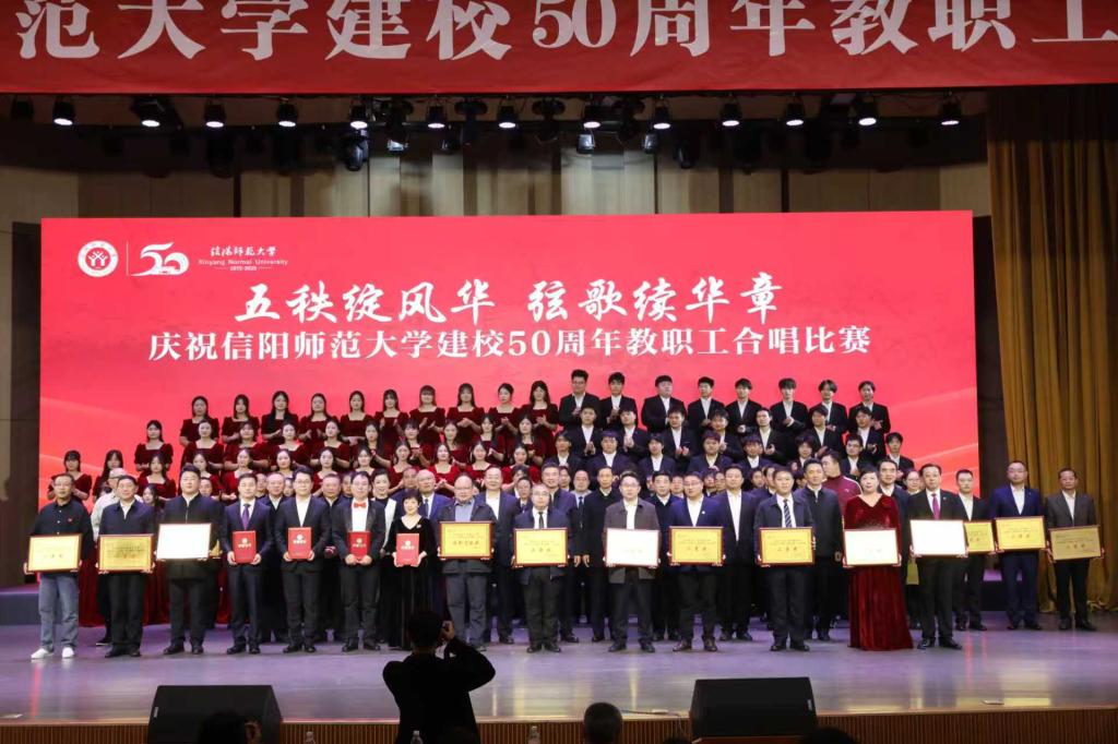 10月21日,信阳师范大学“五秩绽风华 弦歌续华章”教职工合唱比赛在艺术楼音乐厅举行。全体校领导出席活动。全校29支教职工合唱队,共1500余名教职工依次登台高歌,礼赞祖国非凡征程,共庆学校50周年华诞。