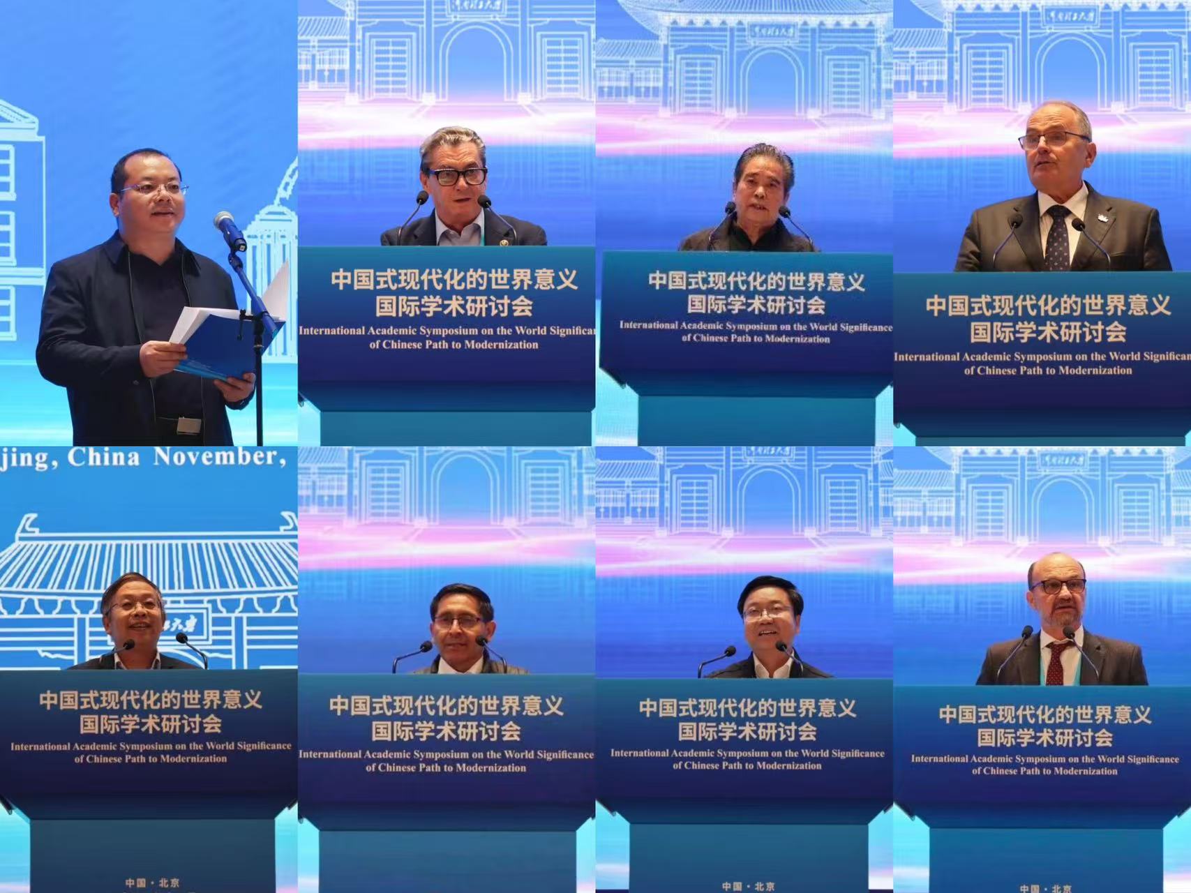 为贯彻落实党的二十届四中全会精神,深入研究和探讨中国式现代化的理论体系、实践成就及其对全球发展的深远影响,11月4日,“中国式现代化的世界意义”国际学术研讨会在北京中国历史研究院举行。此次研讨会由河南理工大学主办,河南理工大学马克思主义学院、社会科学处、国际合作交流处、河南省中国特色社会主义理论体系研究中心(河南理工大学基地)承办。来自俄罗斯、西班牙、匈牙利、秘鲁、阿根廷、格鲁吉亚、委内瑞拉等国的马克思主义政党领导人和学者,以及来自中国社会科学院、中共中央党校(国家行政学院)、北京大学、清华大学、中国人民大学、北京理工大学、华中科技大学、湘潭大学、北京警察学院、河南理工大学等国内院校的50余名专家学者参加会议。研讨会由河南理工大学马克思主义学院党委书记洪振涛教授主持。