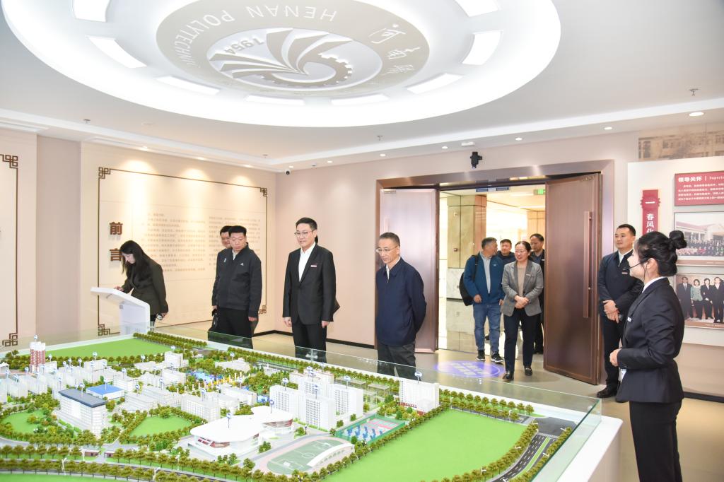 龚方红对河南职院的党建思政工作和育人成效给予了高度评价,并分享了无锡职业技术大学“双高计划”建设、职业本科创建等办学治校的宝贵经验。随后,龚方红一行分别到河南职院党风党纪学习教育馆、五史馆、校史馆和河职创新港参观调研。