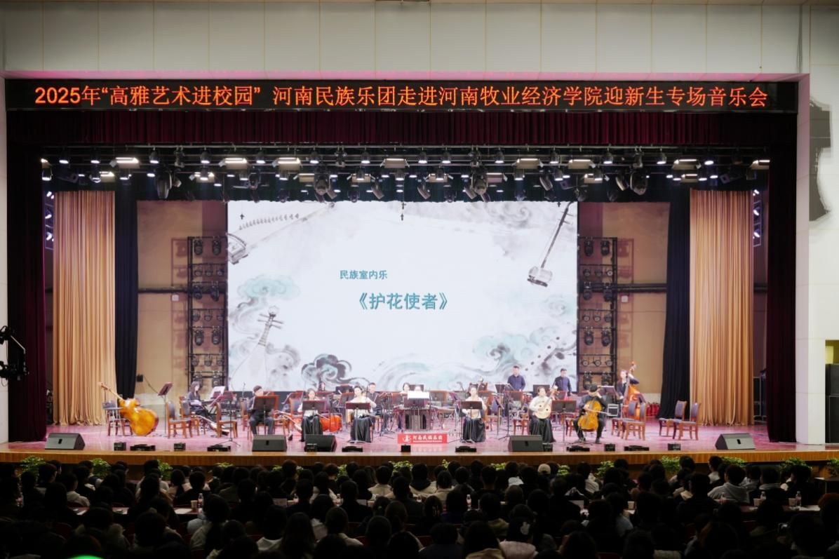 2025年“高雅艺术进校园”活动由河南省教育厅、河南省文化和旅游厅、河南省财政厅主办。河南民乐团的到校演出不仅为学生搭建了亲近艺术、聆听经典的平台,更将美育浸润于校园生活,为校园文化注入了鲜活的艺术活力。演出中,同学们在指挥的带动下热情互动,演出结束,经久不息的掌声表达了同学们对高雅艺术的认同。观看现场直播的同学们也纷纷表示:这是大学新生活,带给他们的美好华章。