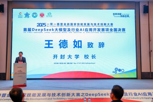 11月8日,2025“一带一路”暨金砖国家技能发展与技术创新大赛之首届DeepSeek大模型及行业AI应用开发赛项全国决赛在开封大学圆满落幕。开封大学校长王德如,河南省高等学校计算机教育研究会副秘书长、学科竞赛委员会主任、郑州轻工业大学创新创业学院副院长尚展垒,河南省开封市委教育工委专职副书记、开封市教育和体育局二级
