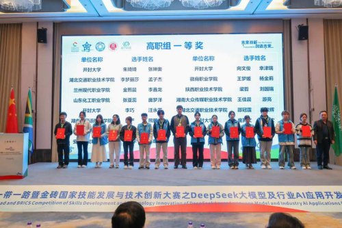 11月8日,2025“一带一路”暨金砖国家技能发展与技术创新大赛之首届DeepSeek大模型及行业AI应用开发赛项全国决赛在开封大学圆满落幕。