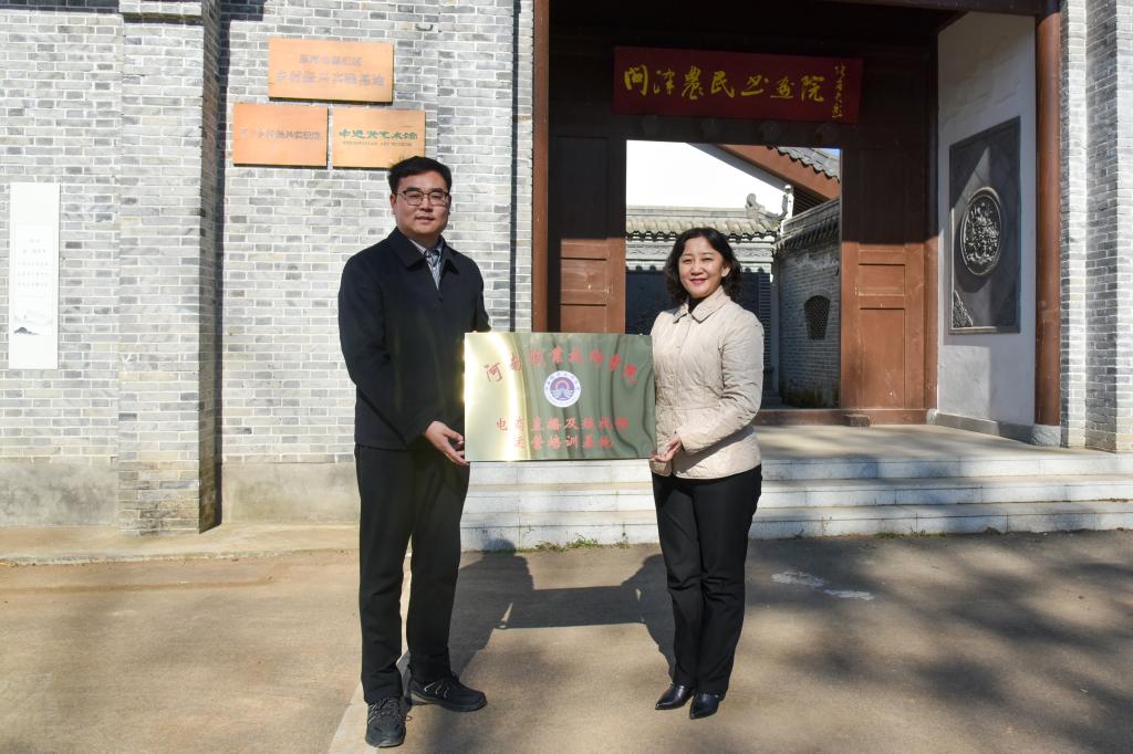 会后,夏新颜与王新卫共同为“河南职业技术学院电商培训基地”和“文化旅游学院教学实践基地”授牌。