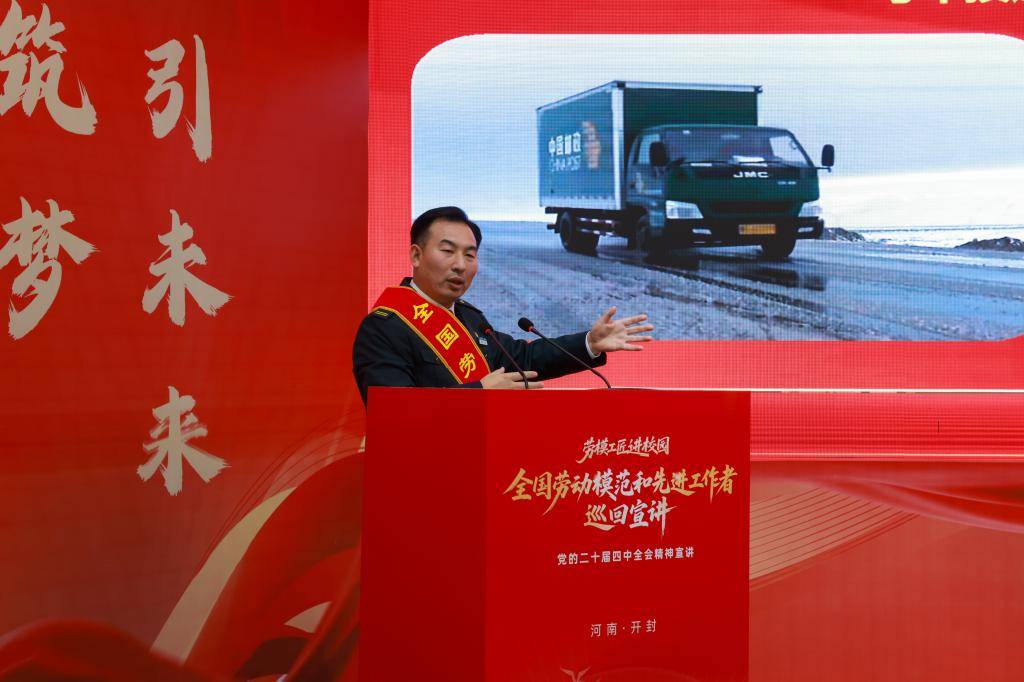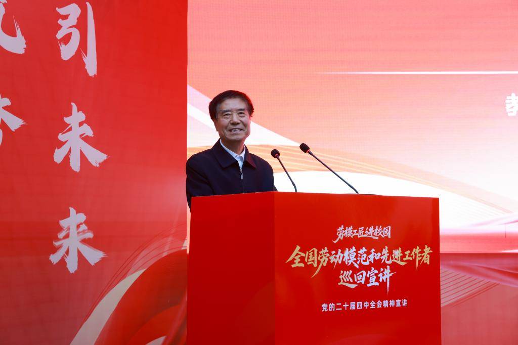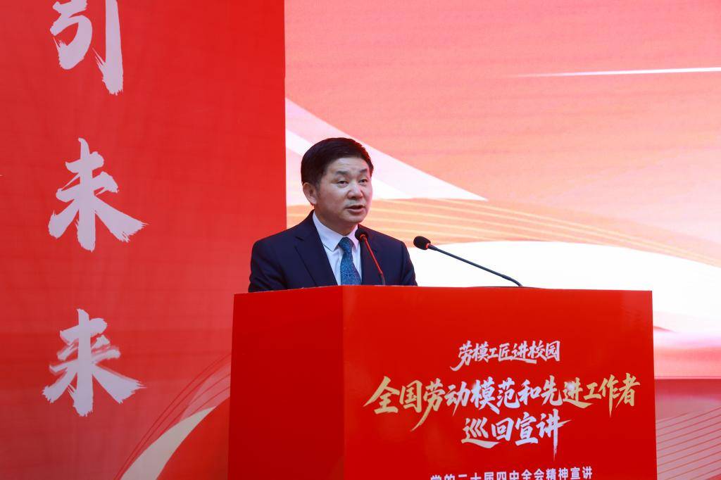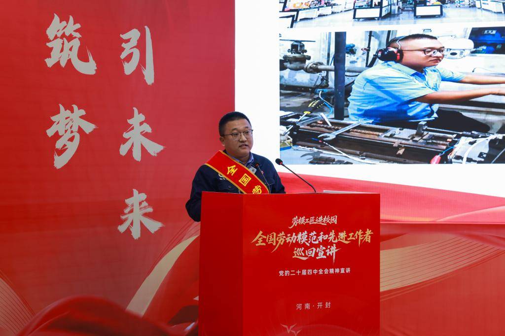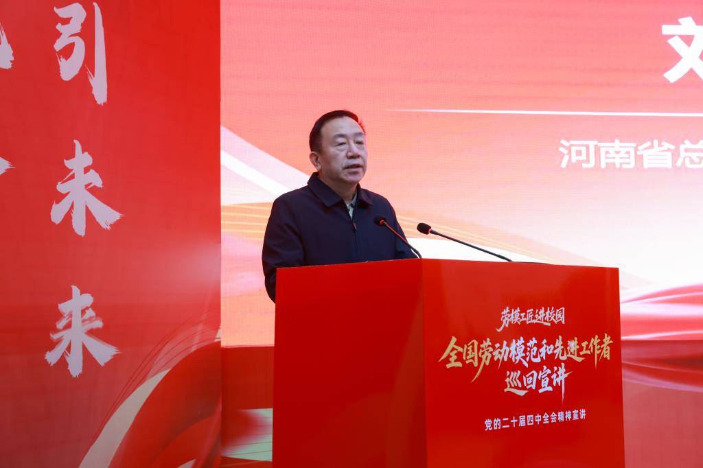 11月20日,由全国总工会宣传教育部、教育部关工委指导,河南省总工会、河南省教育厅主办,开封市总工会、开封大学承办的“劳模工匠进校园”暨党的二十届四中全会精神宣讲在开封大学举办。