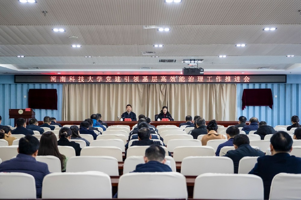 11月27日,河南科技大学召开党建引领基层高效能治理工作推进会,深入学习贯彻党的二十届四中全会精神、习近平总书记在河南考察时的重要讲话精神和省委党建引领基层高效能治理工作现场会精神,总结学校阶段性工作进展,对下一步工作进行安排部署。校领导王洪彬、杨霞、海然、郭相春、吴庆涛、侯帅出席会议。
