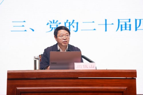 闫俊山围绕“十四五”时期经济社会发展的重大成就、“十四五”时期发展的经验启示、党的二十届四中全会的战略要点三个方面深度诠释全会精神,重点梳理了“十四五”时期在经济建设、科技创新、民生保障、生态文明等领域取得的显著成就,并对“十五五”规划建议进行了详细解读。报告逻辑严密、内容充实、催人奋进。