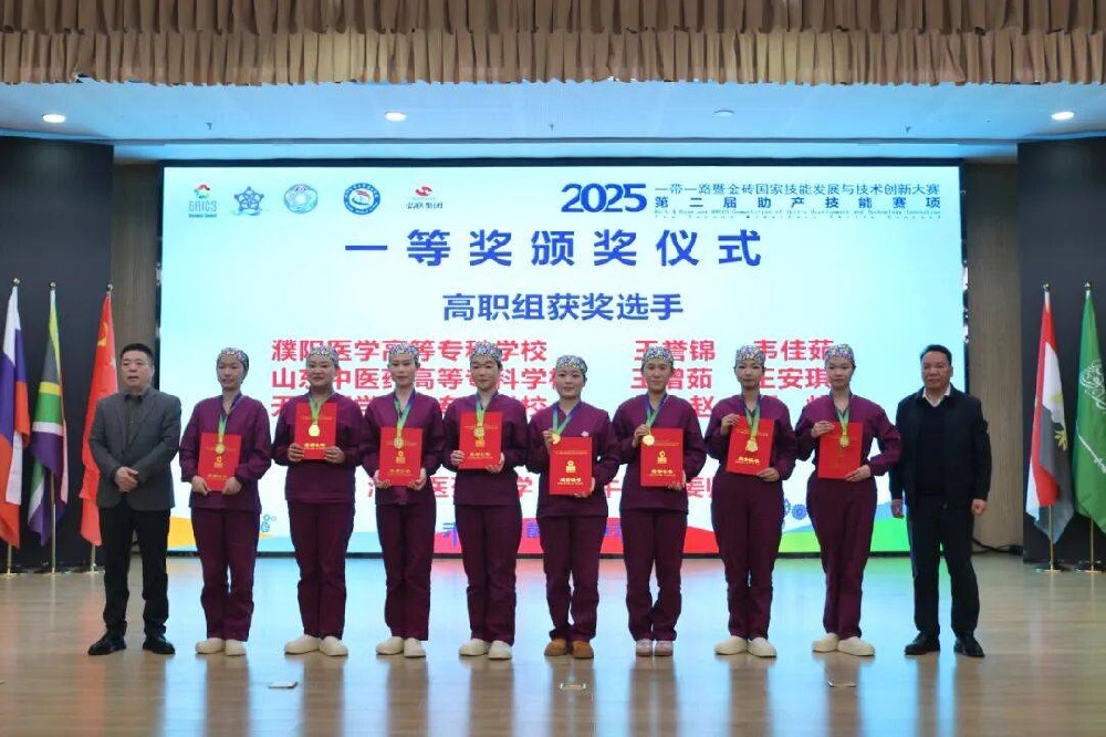 12月5日至12月8日,2025一带一路暨金砖国家技能发展与技术创新大赛第二届助产技能赛项在濮阳顺利举行。濮阳医学高等专科学校护理学院助产专业学子王誉锦、韦佳茹荣获大赛一等奖,教师袁会娟、常焕娇荣获优秀指导老师奖,学校荣获“最佳组织奖”“突出贡献奖”。