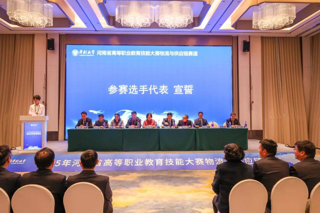 王德如在致辞中介绍了开封大学发展情况和现代物流管理专业群发展成果。他指出,此次大赛紧扣数智化转型趋势,精准对接多式联运、智能仓储等产业前沿需求,既是落实党中央、国务院关于职业教育改革发展决策部署的具体实践,也是我省打造国家职教创新发展高地、培育“物流豫工”等特色技能人才品牌的关键举措。他强调,开封大学将全力提供优质赛事服务,确保大赛“公平公正、精彩高效、富有影响力”,希望全体参赛选手以“技能报国”为己任,传承执着专注、追求卓越的匠心精神,在赛场上切磋技艺、超越自我,赛出水平、赛出风格、赛出新时代高职学子的青春风采!