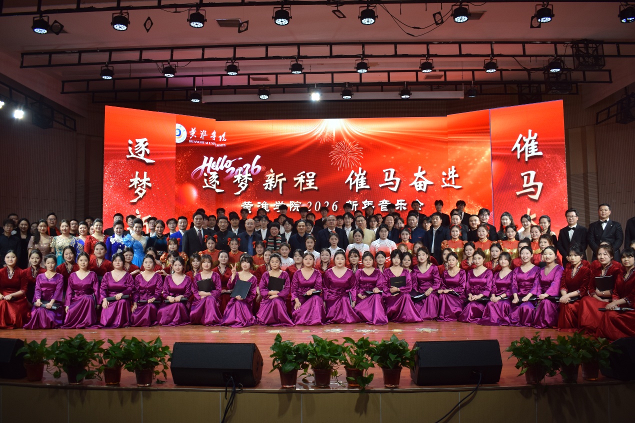 12月25日,黄淮学院音乐学院演播厅内华灯璀璨、乐韵悠扬。由学校党委宣传部、音乐学院联合承办,市音乐家协会协办的的2026年“逐梦新程,催马奋进”新年音乐会在此举行。校领导李晓彦、曹忠义、姜彦玲、张艺迪、刘文富等与师生代表欢聚一堂,在激昂旋律中回顾奋斗历程,展望崭新征程。时值“十四五”规划收官之年,学校围绕