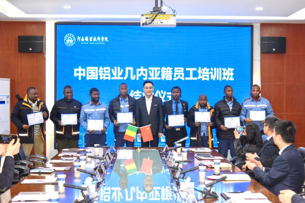 结业仪式现场校党委书记厉励为几内亚籍学员颁发结业证书1月9日上午,河南职业技术学院2025年中国铝业几内亚籍员工培训项目结业仪式在勤业楼332举行。校党委书记厉励作总结讲话,并为学员颁发结业证书。中国铝业股份有限公司人力资源部(党委组织部)培训处经理杨小卫、有色金属工业人才中心教育培训处处长助理陶瑞雪等嘉宾应