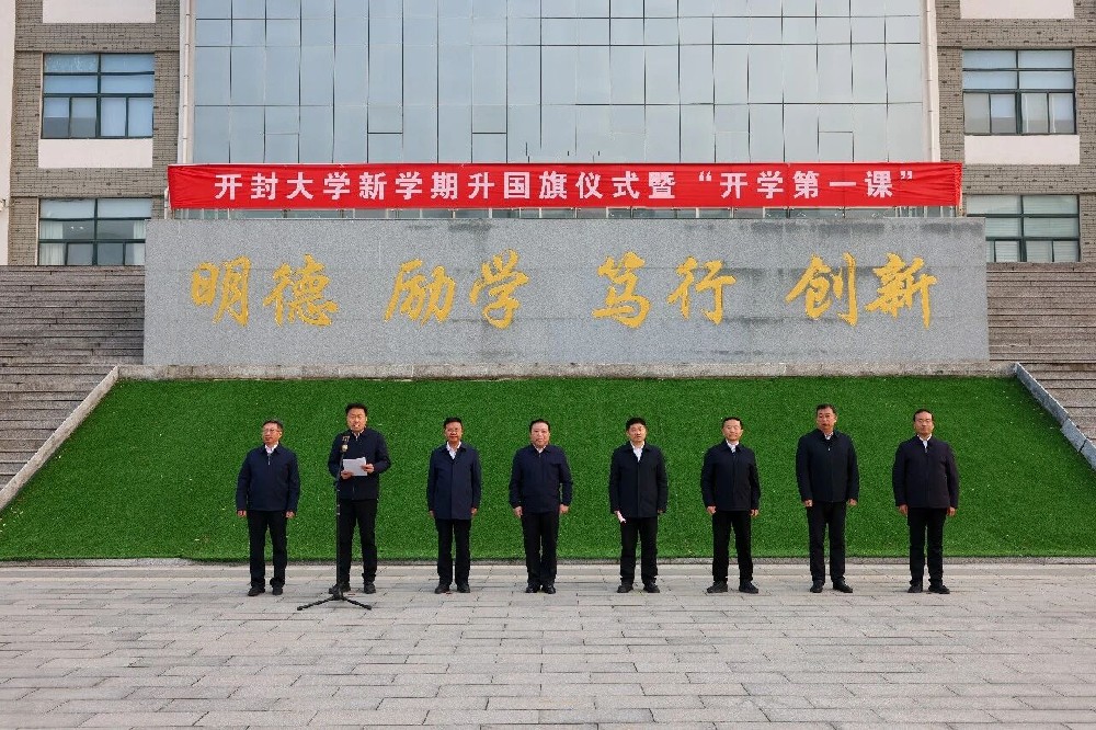 3月9日清晨,开封大学在大观广场举行2026年春季学期升国旗仪式暨“开学第一课”。学校党委书记蔡建春、校长王德如出席活动。仪式由校党委副书记张合主持。