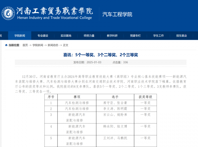 此次改革成效显著,核心教师总结改革经验,主持编写的《智能网联汽车技术》获评国家规划教材,《二手车鉴定与评估》获评为省规教材,形成了可复制、可推广的课程改革模式,加之省级一流课程、在线精品课程的示范引领及赛事佳绩的加持,为同类院校相关课程改革提供了有力借鉴,进一步推动了职业教育高质量发展,为新能源汽车产业转型升级注入人才动力。