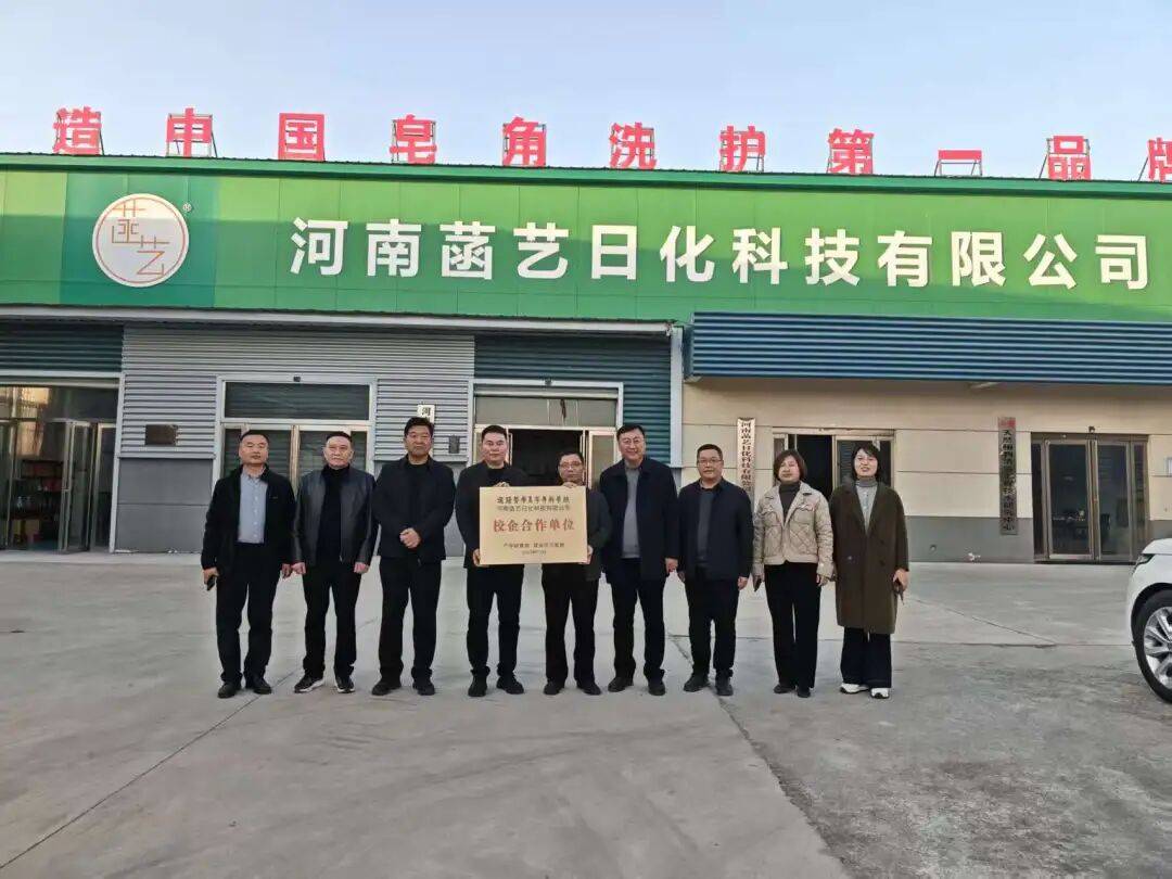 在河南函艺科技有限公司,双方举行校企合作单位授牌仪式并召开座谈会,确山县人大常委会副主任张保红应邀参加座谈会。座谈会上,双方围绕科研合作、药学院与企业共建产业学院等事宜展开交流,并就产教融合、科研联合攻关、人才培养协同等方面深入交换意见,达成多项合作共识。