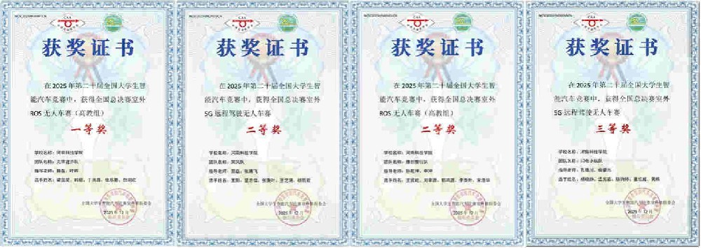 近日,由中国自动化学会主办、山东工程职业技术大学承办的第二十届全国大学生智能汽车竞赛室外赛全国总决赛圆满落幕。河南科技学院学子在人工智能专业老师的悉心指导下,凭借扎实的专业功底、出色的技术创新能力与默契的团队协作,在全国及北部赛区赛事(室外ROS无人车赛高教组/5G远程驾驶无人车赛)中表现优异,荣获国家级